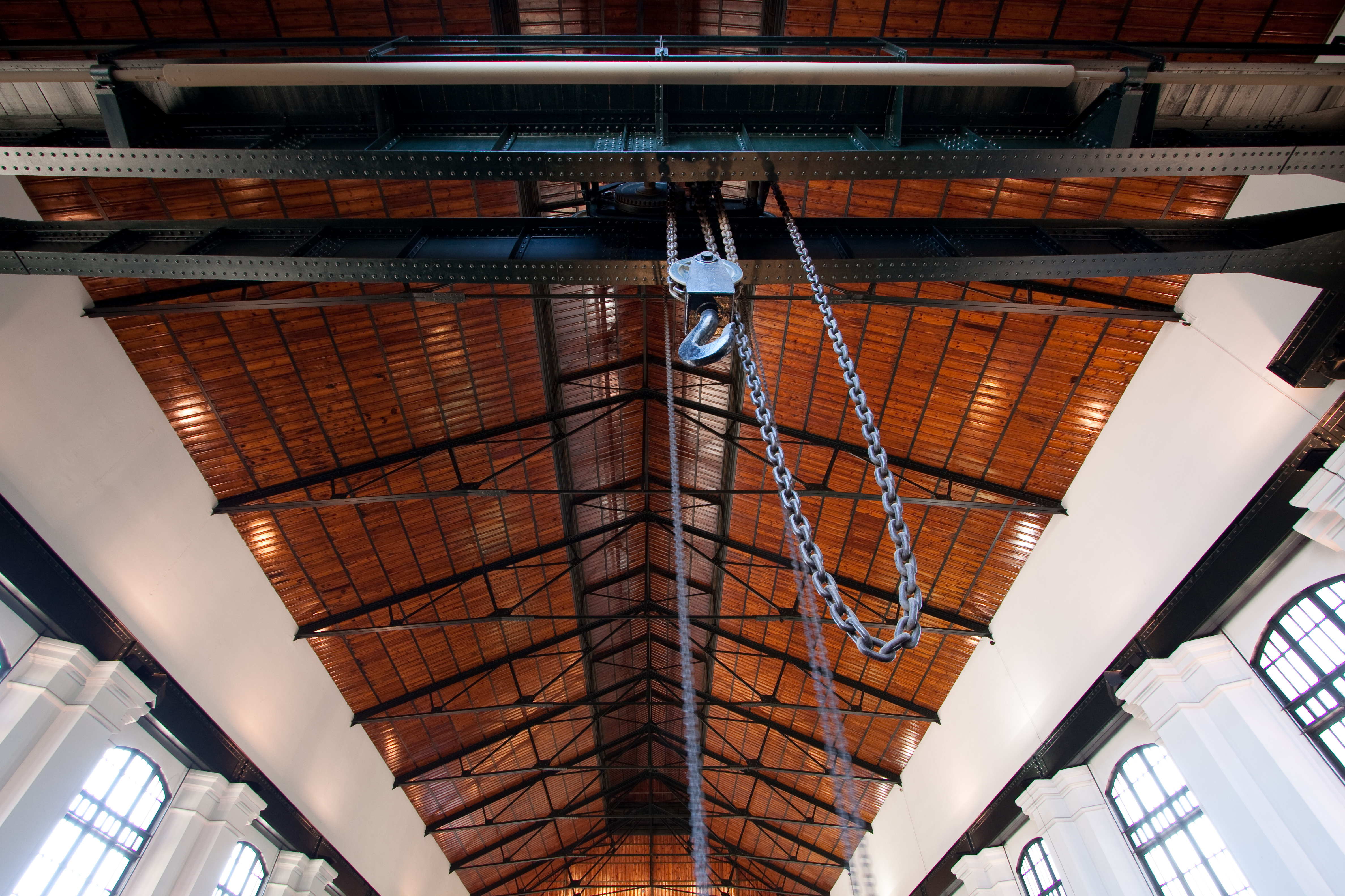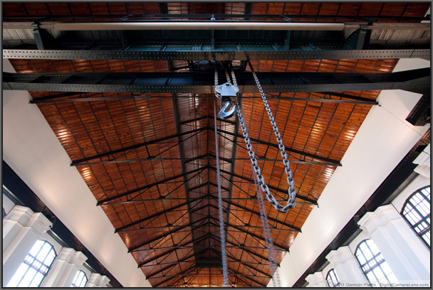 las vigas que hay entre cada ventanal. El puente grúa estaba destinado a