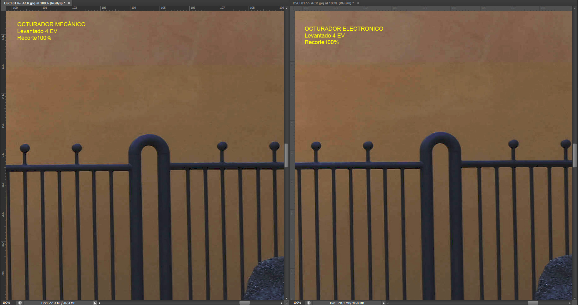 como los dos recortes de pantalla al 100% donde se