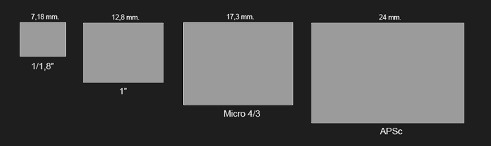 que llevan la gran mayoría de cámaras compactas (1/1,8 "), las CSC de