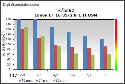 viñeteo de campo (inf. al nominal) y las deformaciones de cada focal.