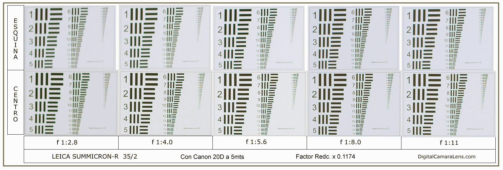 esperar hasta los f 1:8.0 para ver las esquinas correctas. Un resultado