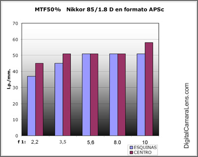 colocándose en las 58 l.p./mm. , valor máximo que alcanza la D200.