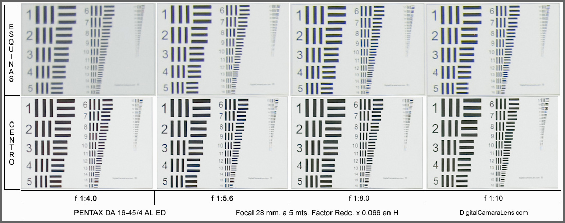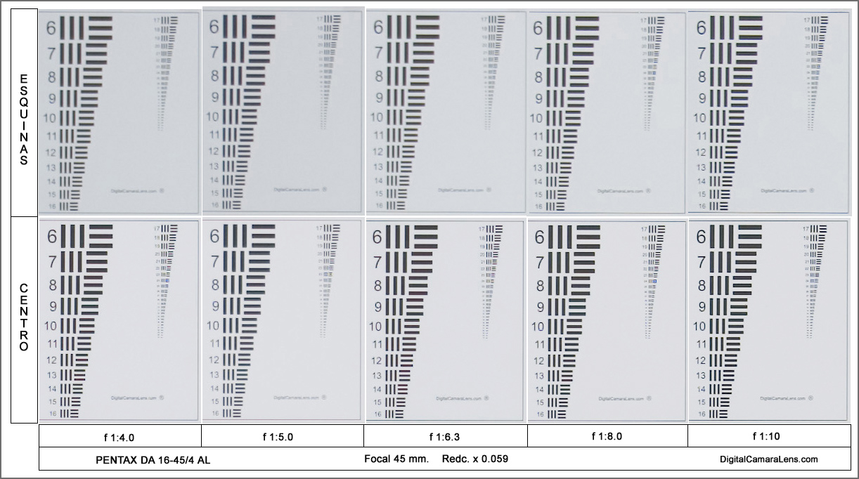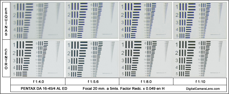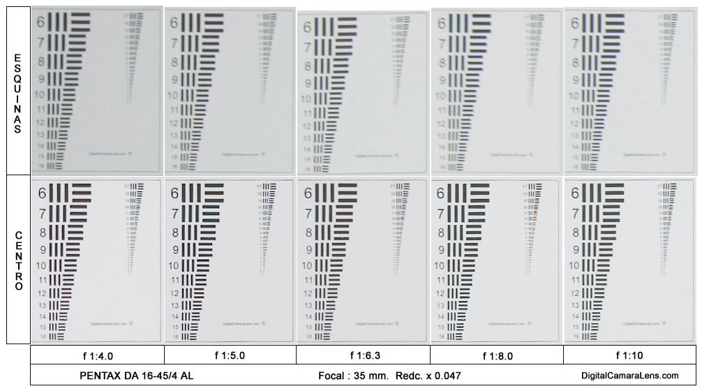 En el centro logra unos valores correctos a partir de f 1:6.3 pero las