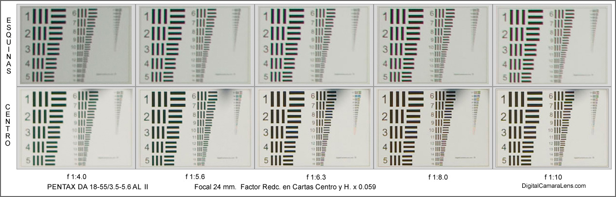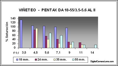 El viñeteo se aprecia muy alto en 18 mm. en prácticamente todos los