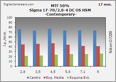 de nitidez [centro | esquinas] por focal y abertura.