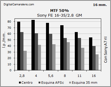 Sony FE 16-35/4 G PZ podemos ver que a mismo diafragma y focal están