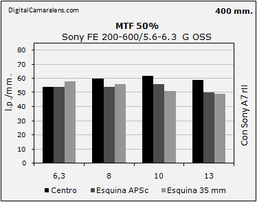 - Rendimiento óptico notable justo, mejorable en los 600 mm.