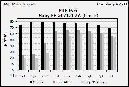 muy lineal hasta los f 1:9 donde inicia la bajada por difracción.
