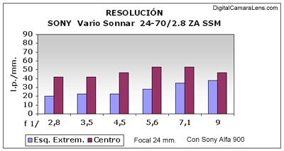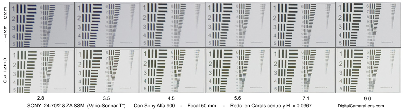 respecta a Nitidez. De esquina a esquina (sin hurgar en las extremas) desde los 24 a los 50 mm. este