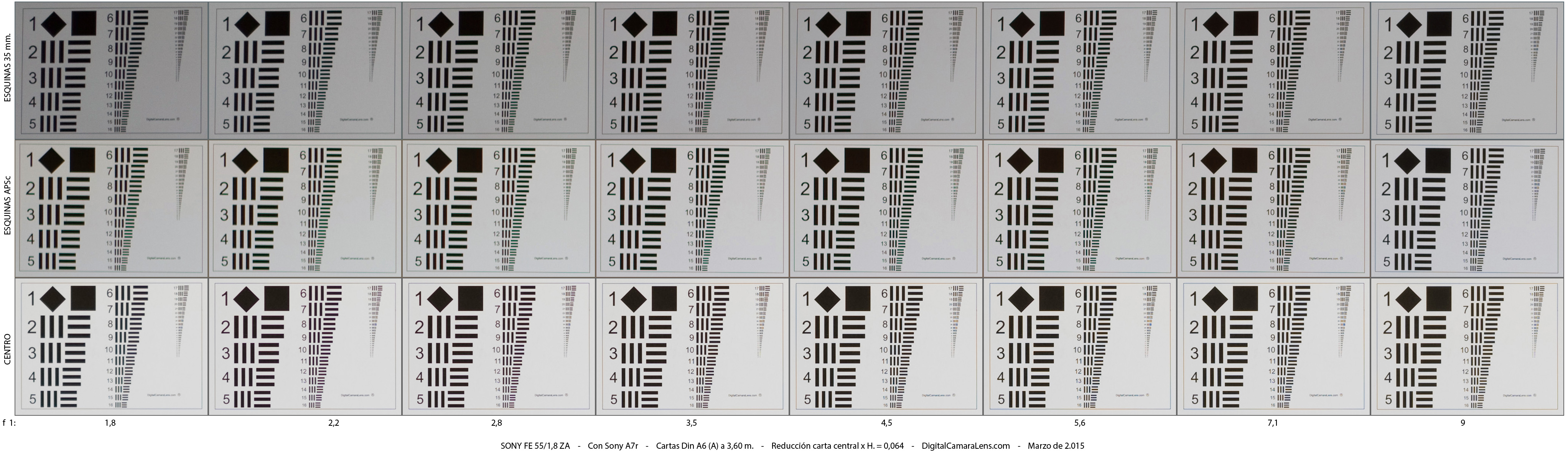 unas esquinas con unos valores MTF elevados donde las de la zona de 35 mm.