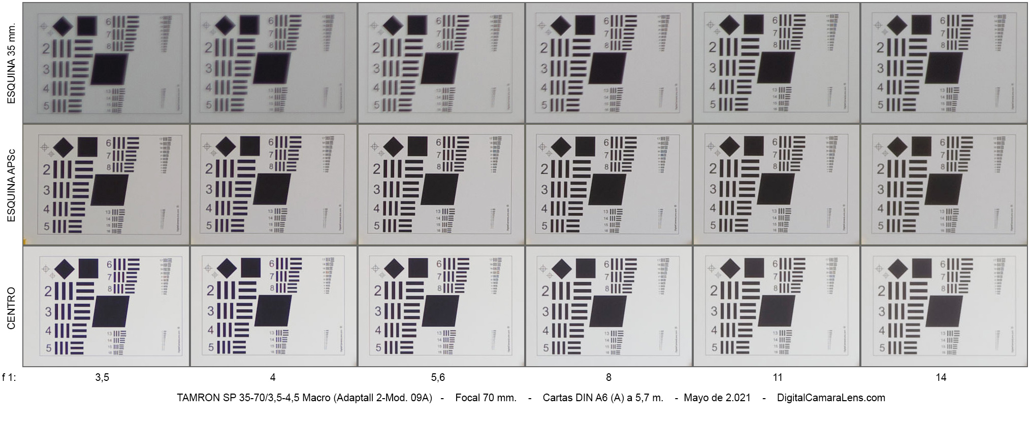 Probeta 70 mm. - Magnificación 1:2,78 (anunciada 1:2,8) |