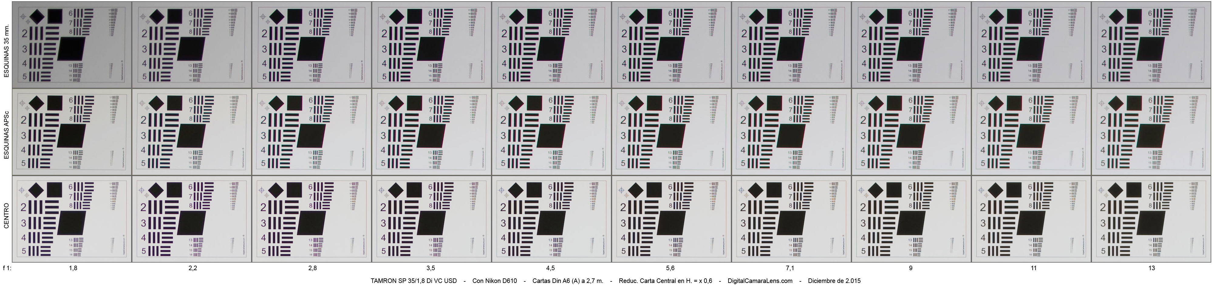 RGB registrado a plena abertura excelente. Los valores centro/esquina