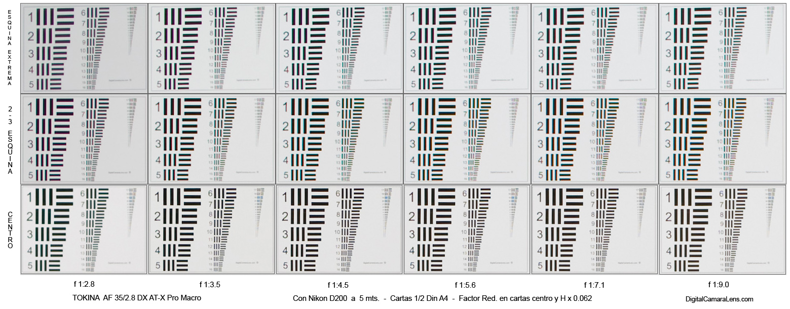 resolución) en las esquinas extremas y en 2/3 en todos en todos los