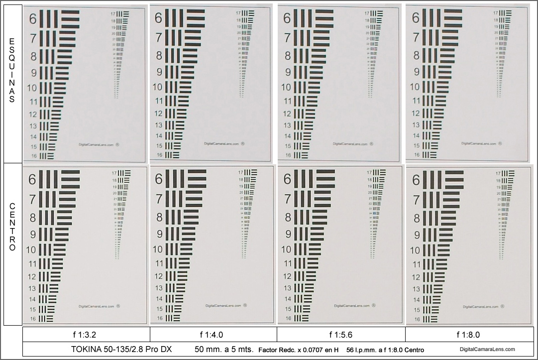 en f 1:2.8 y f 1:3.2. no llegando a un valor correcto ni a f 1:8.0