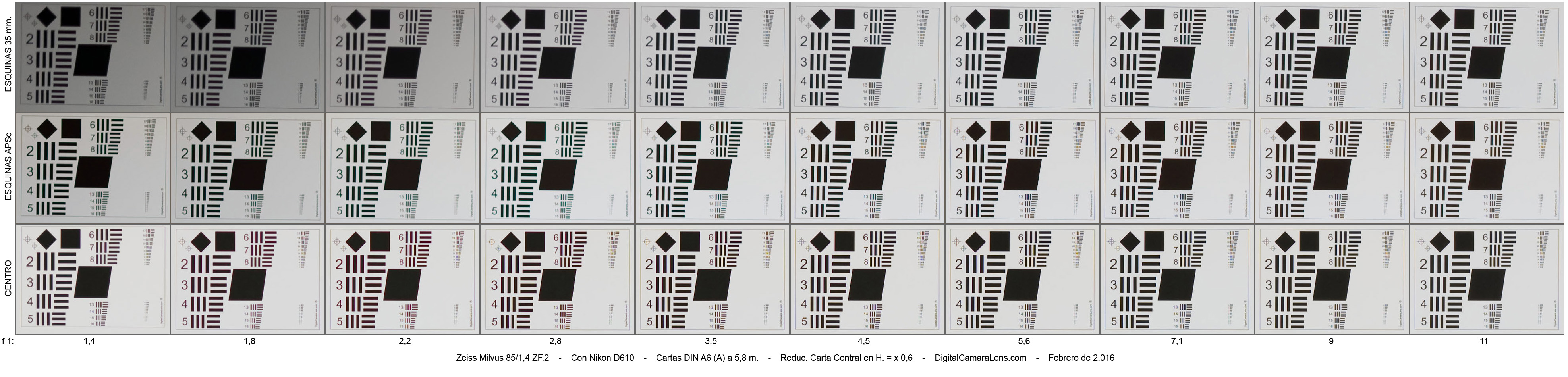 ACs laterales prácticamente nulas a f 1:1,4 y nulas en los siguientes diafragmas.