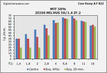 lado la tabla de su versión actual, El Milvus 50/1,4.