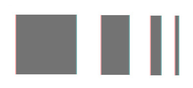 En la tercera se produce un desfase de 3 Px. del canal rojo,