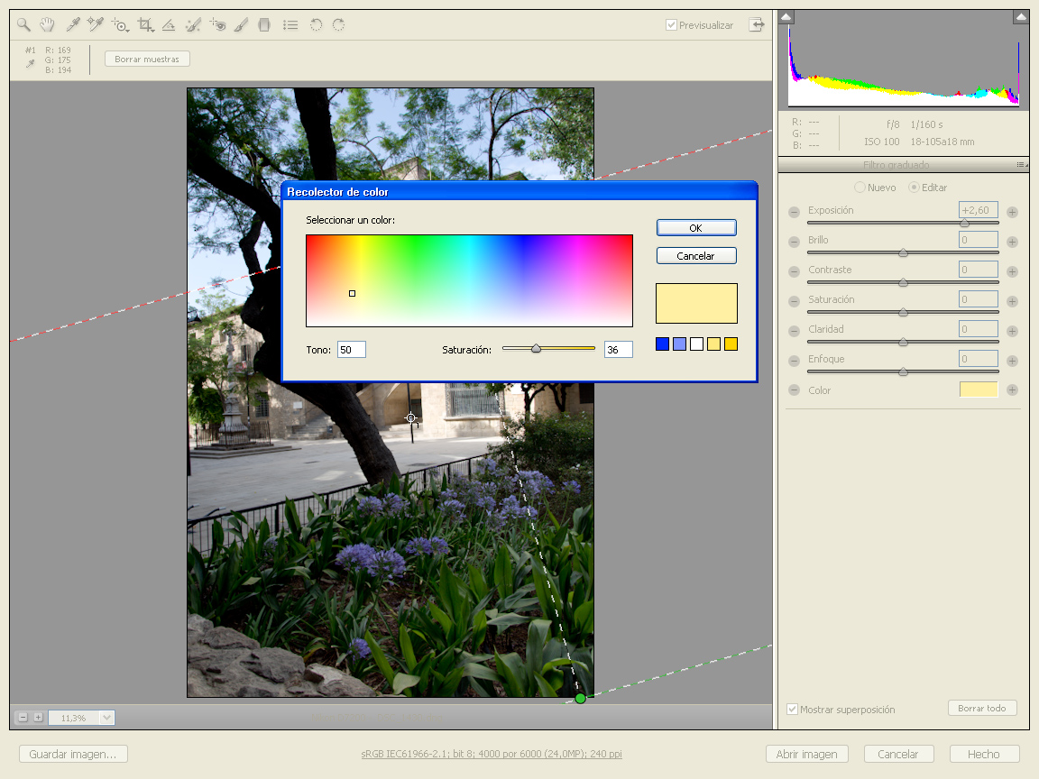 corrección de balance de blancos (sombra). Si se pasa el ratón por encima se