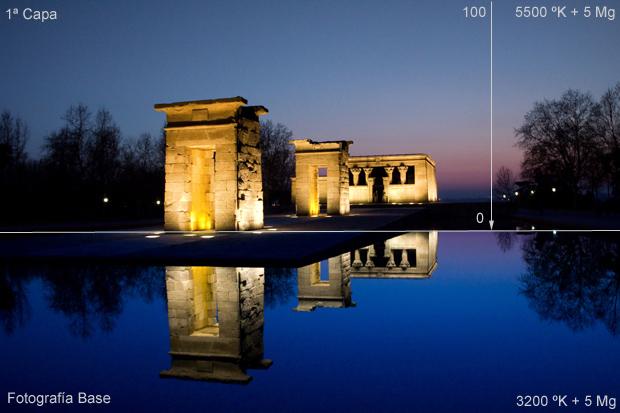 segunda imagen más azulada [3100 ºK+5 Mg.] coloqué en la mitad superior la
