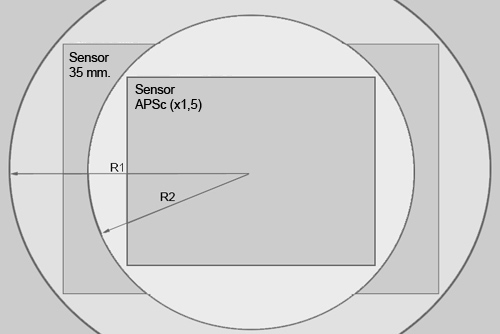 entre objetivos APSc y 35 mm.
