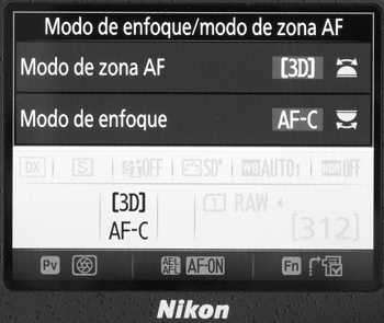 - AF-C 3D. Enfoque continuo con activación de punto de seguimiento.