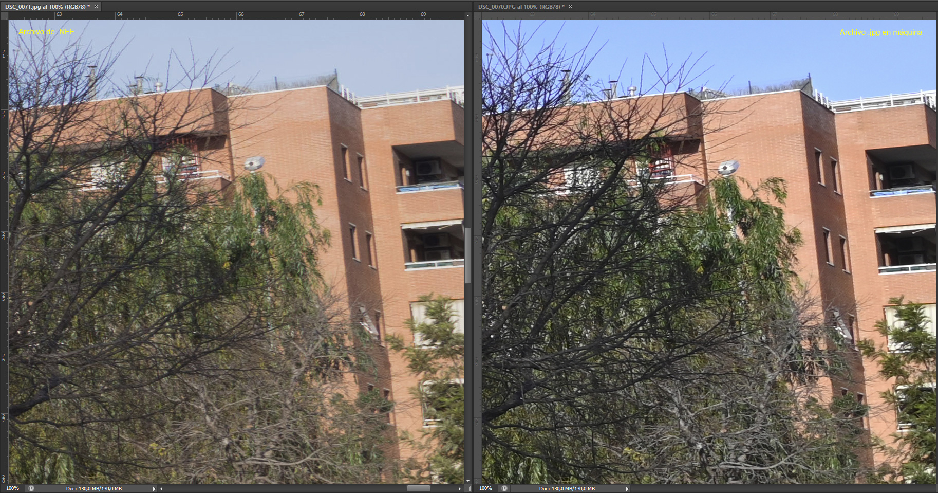 capturas de pantalla donde se compara al 100% dos detalles