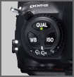 En la parte frontal los mandos clásicos más uno muy practico de función personalizable, o sea la que queramos, (ISO 100, una determinada forma de