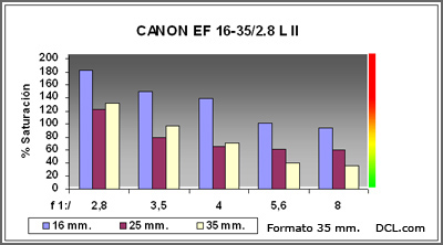 En 16 mm. , a 3/4 de las esquinas extremas y formato APSc se aprecian en todos los diafragmas