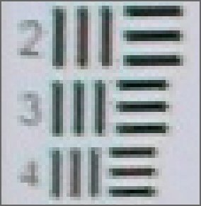Rec. Centro f 1:2.8 Escala nº 18 Equiv. a 49 l.p./mm. (2.625 l.p.h.)