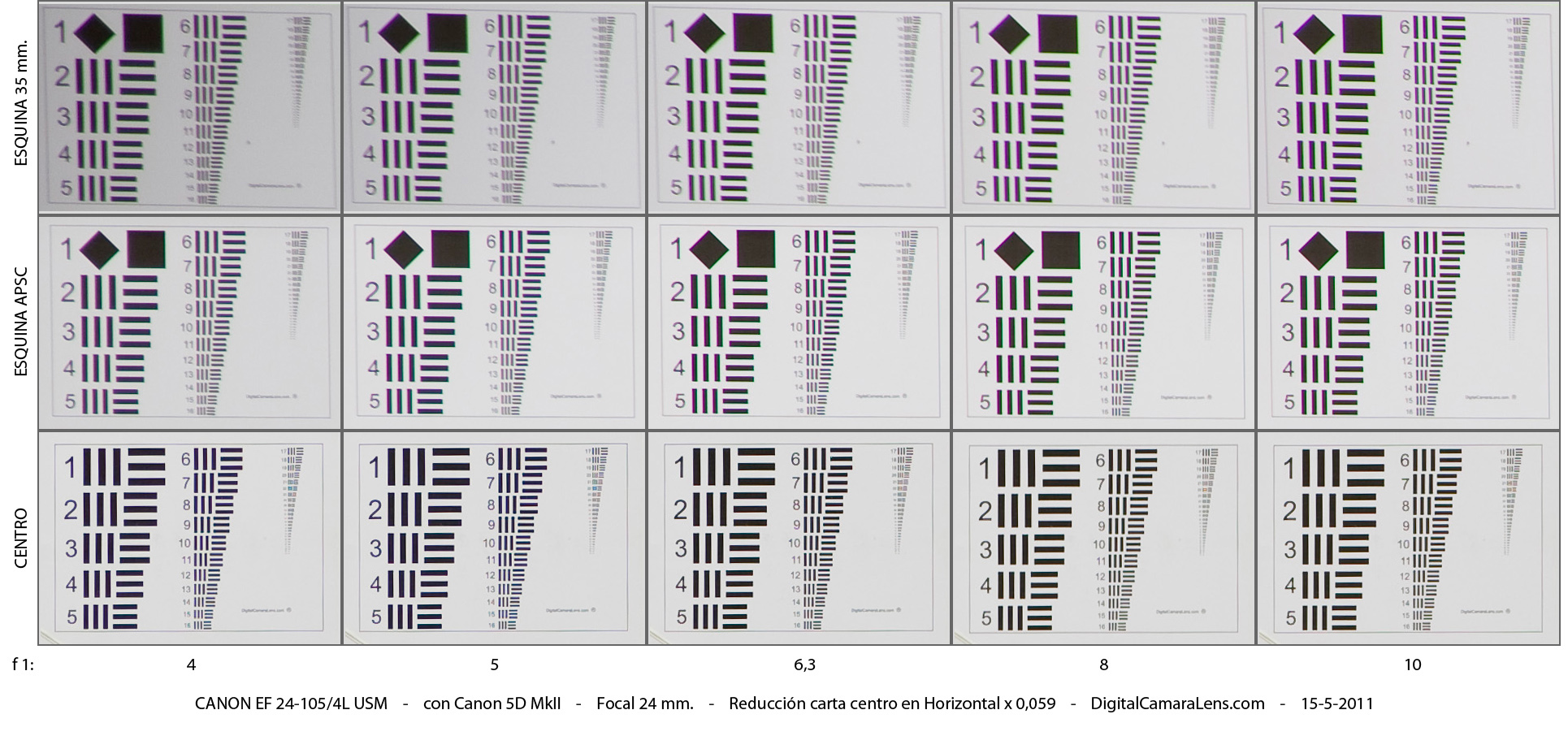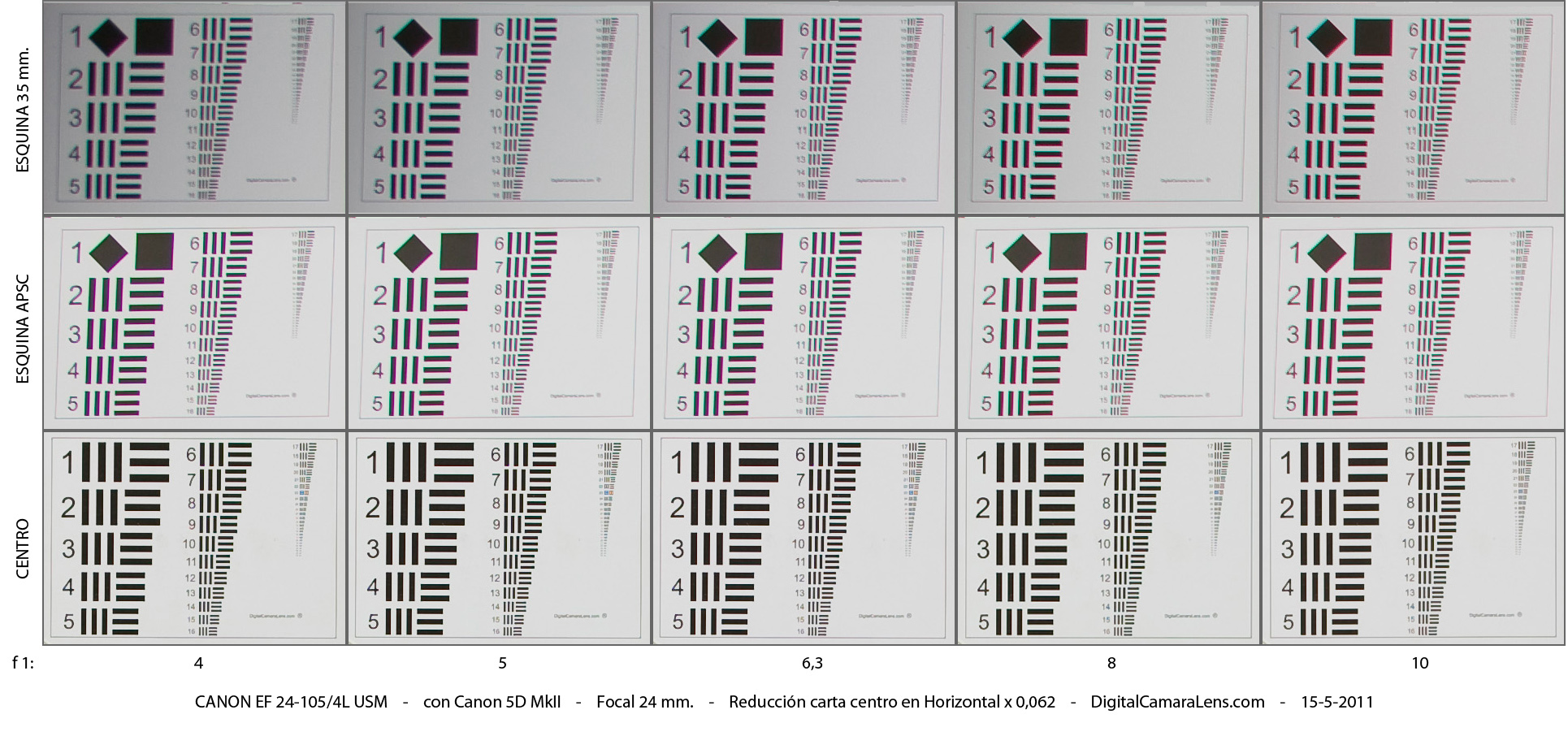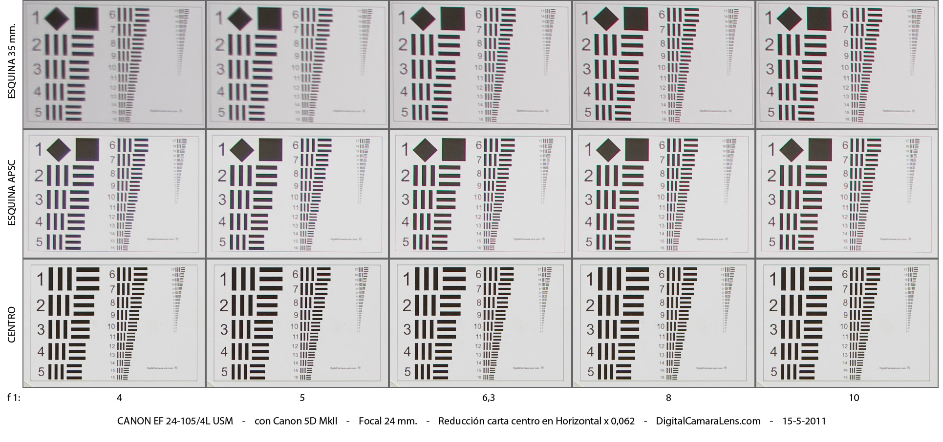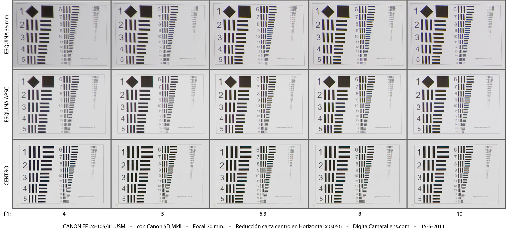 del formato de 35 mm. En las cartas de esquinas (zona izquierda),
