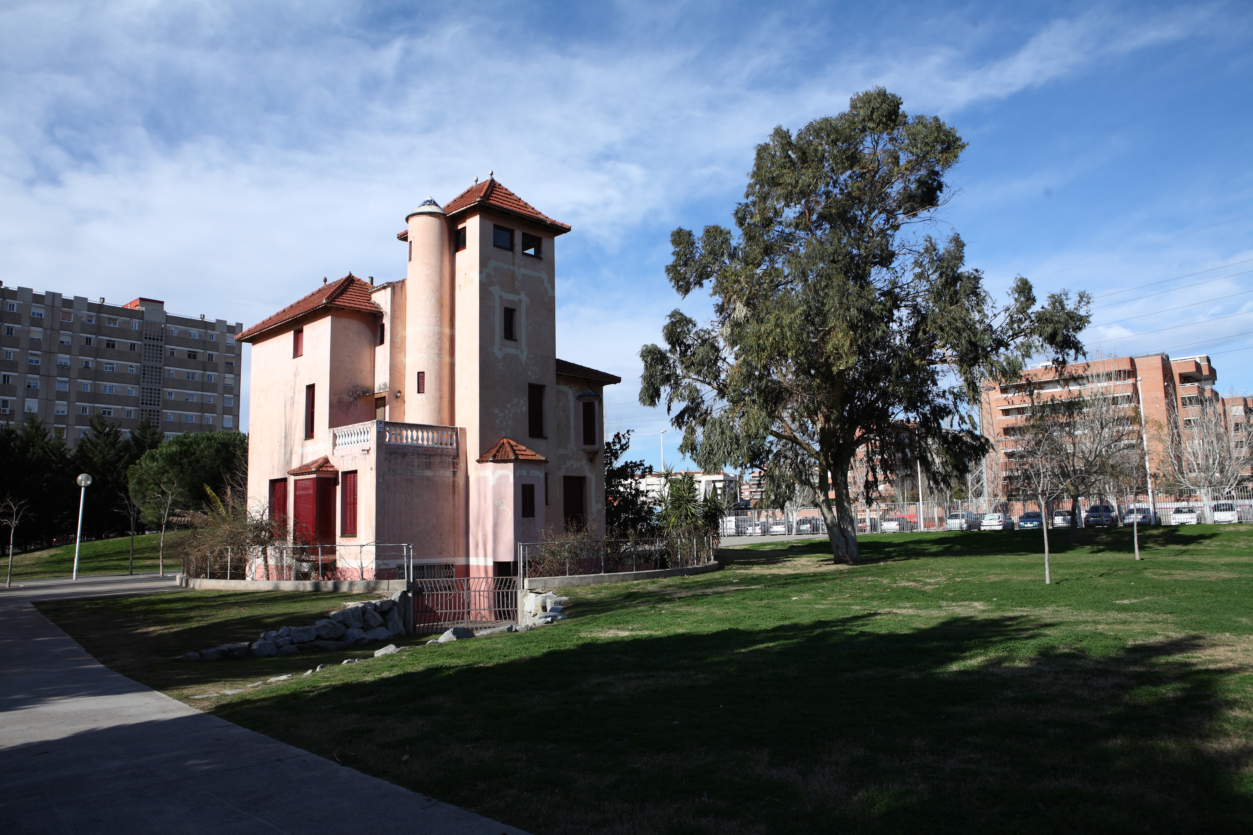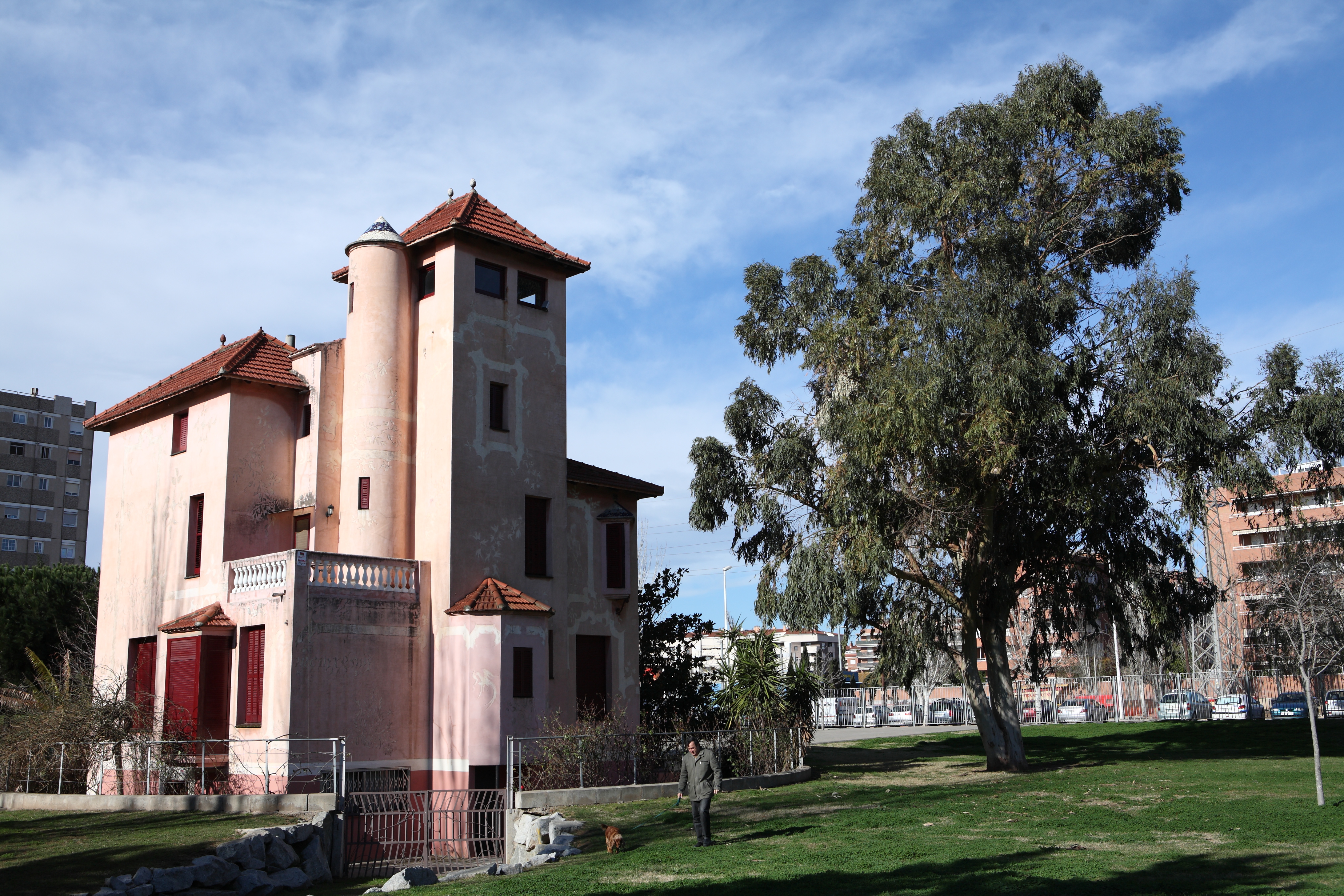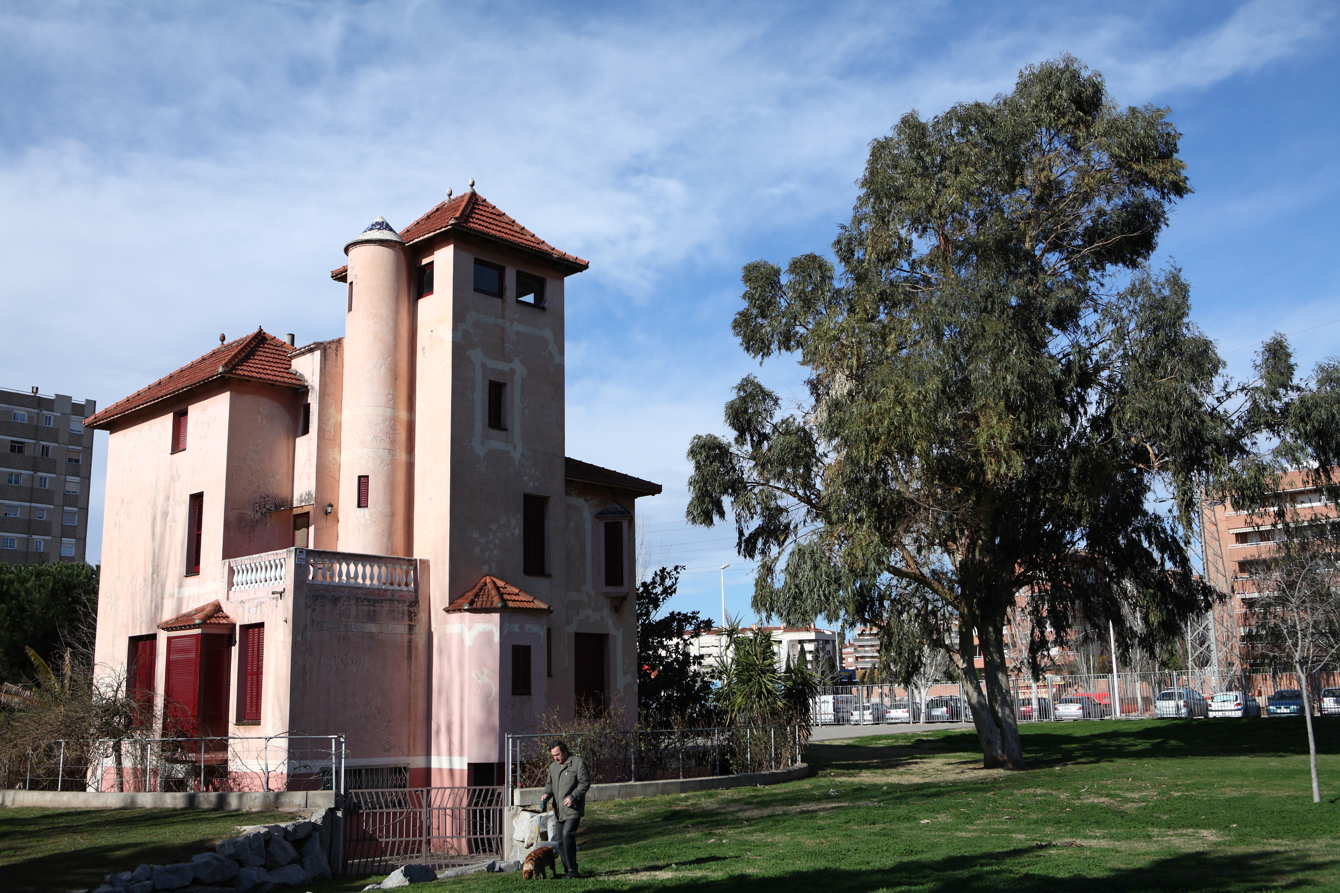 el parasol instalado.