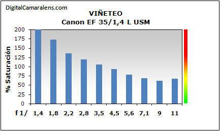 probeta del muestreo de viñeteo a f 1:1,4.