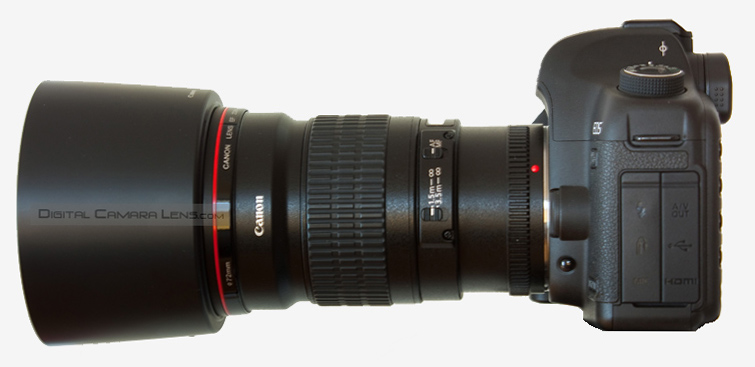Abajo una imagen con parasol instalado y montado en la canon 5D MkII. Es
