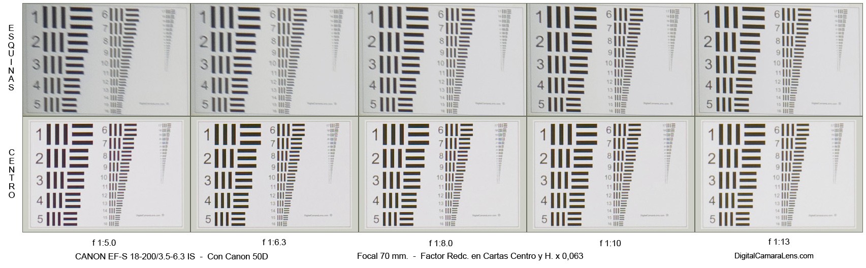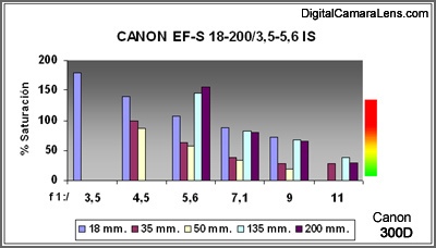 importantes en todas las focales con excepción de los 50 y 70 mm.