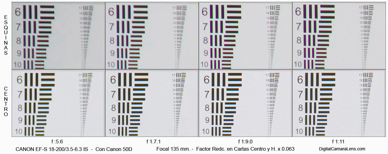 Con la Canon 50D en todas las focales, excepto en los 135 y 200 mm., la