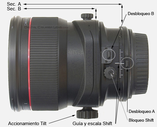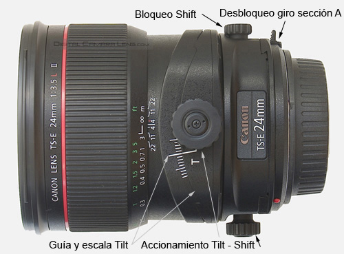 Canon describe a estas ópticas como TS (tilt = basculación + shift =