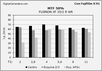 Los valores MTF50% no son lo elevados en la zona central que podríamos