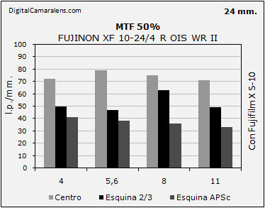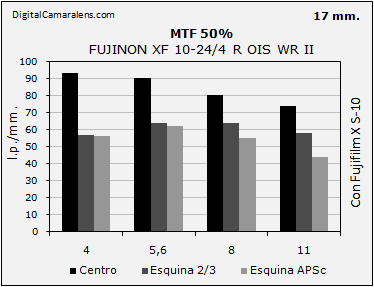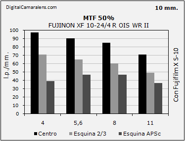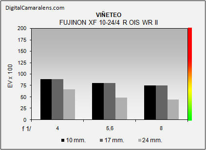 la franja de f 1:5,6 a f 1:8 cayendo de forma medianamente apreciable en