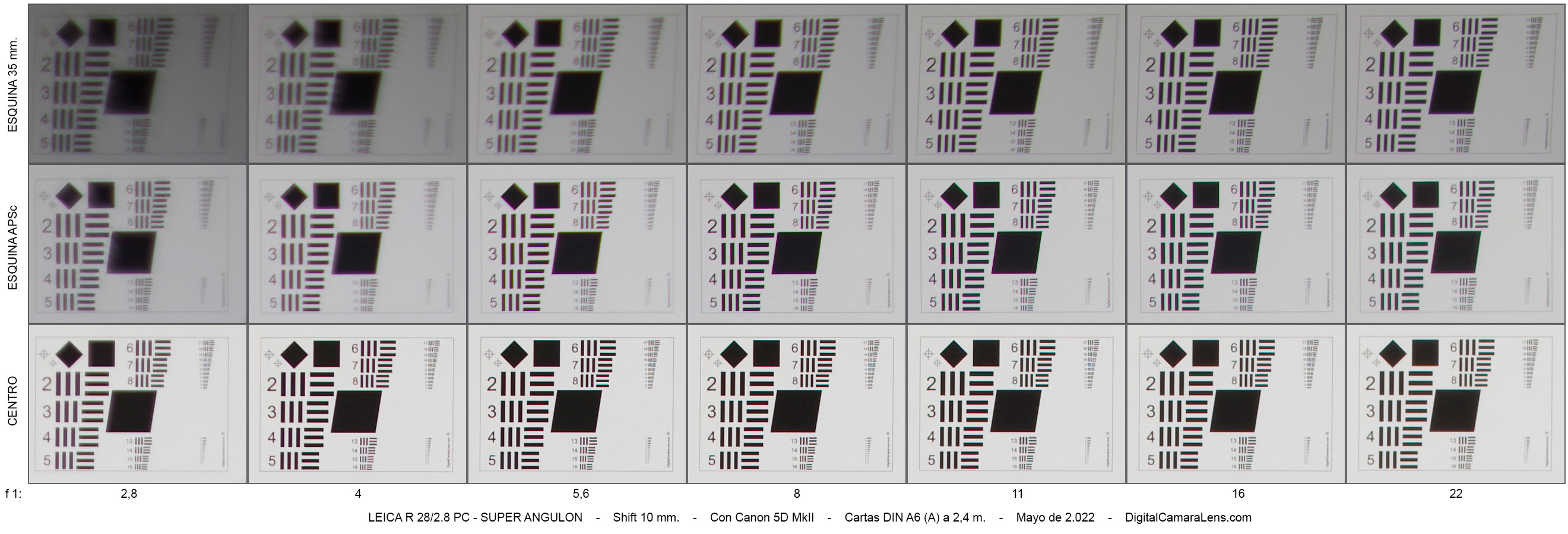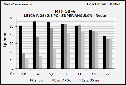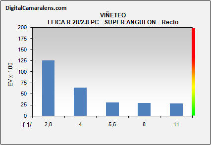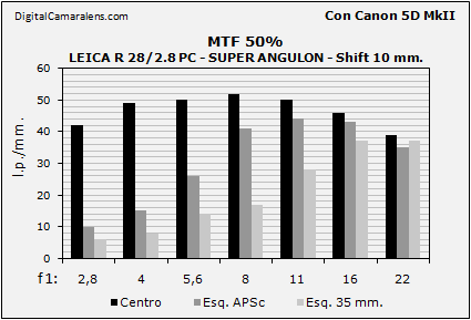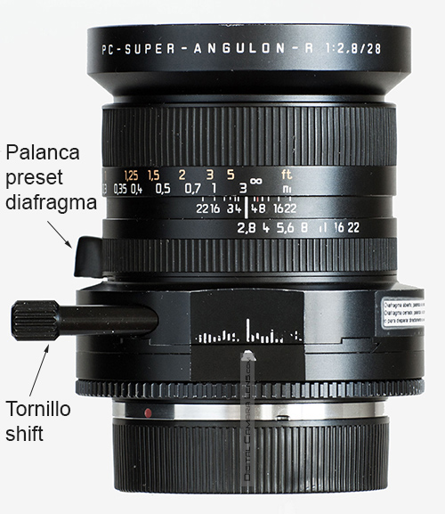 Este 28 mm. proyecta un círculo de imagen con una diagonal de 62 mm. lo que le permite un desplazamiento