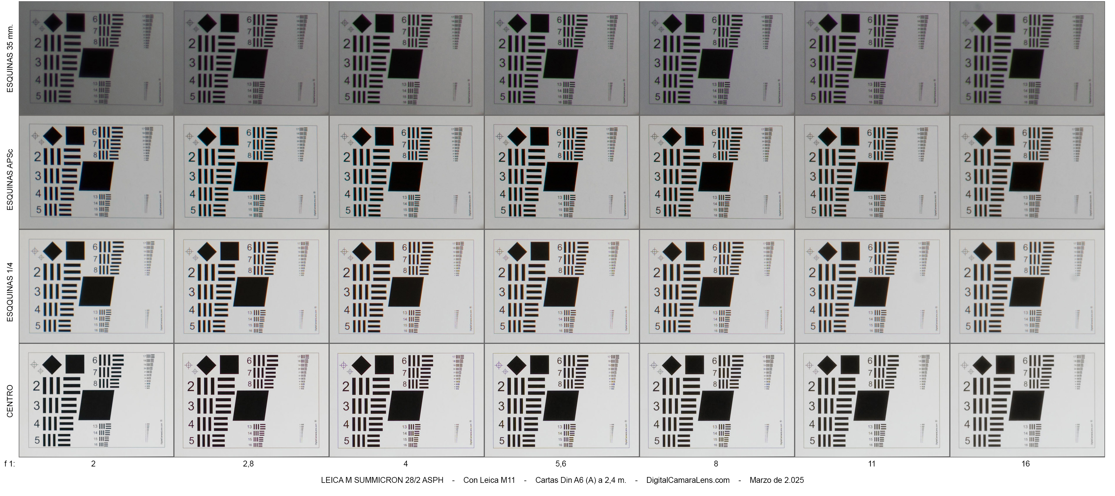 28/2.8 ASPH, y salvando la diferencia de resolución entre las