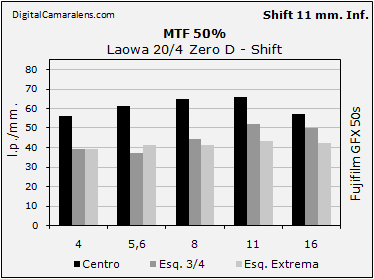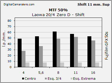 Tiene un desplazamiento (Shift) máximo en ambos sentidos de 11 mm. que unido a la