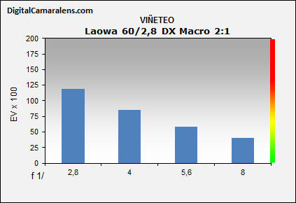Distorsión en 35 mm. con enfoque a macro 2:1 y f 1:8