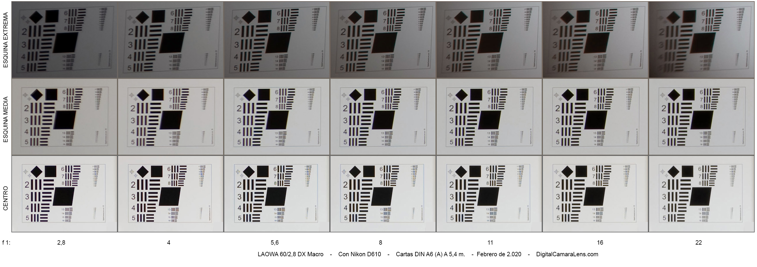 centro-esquina extrema muy correcto, notable. La distorsión geométrica es elevada