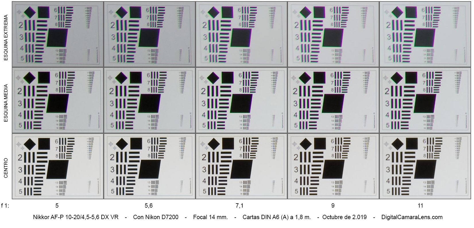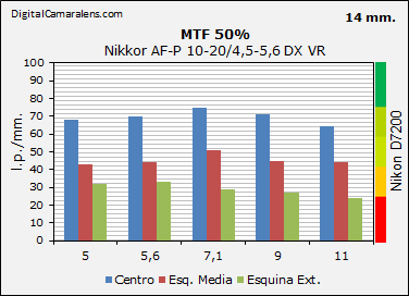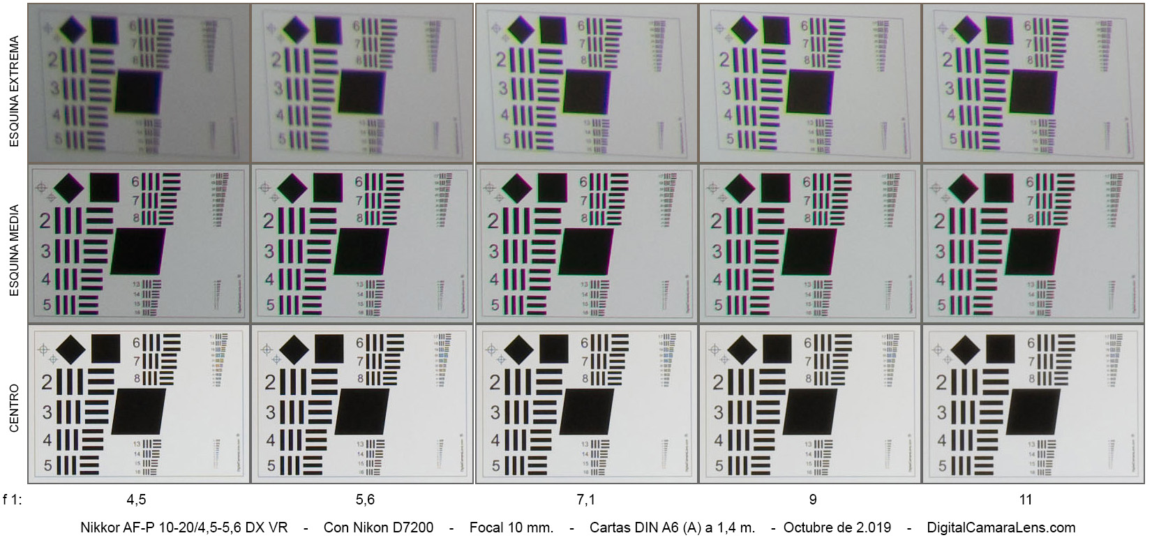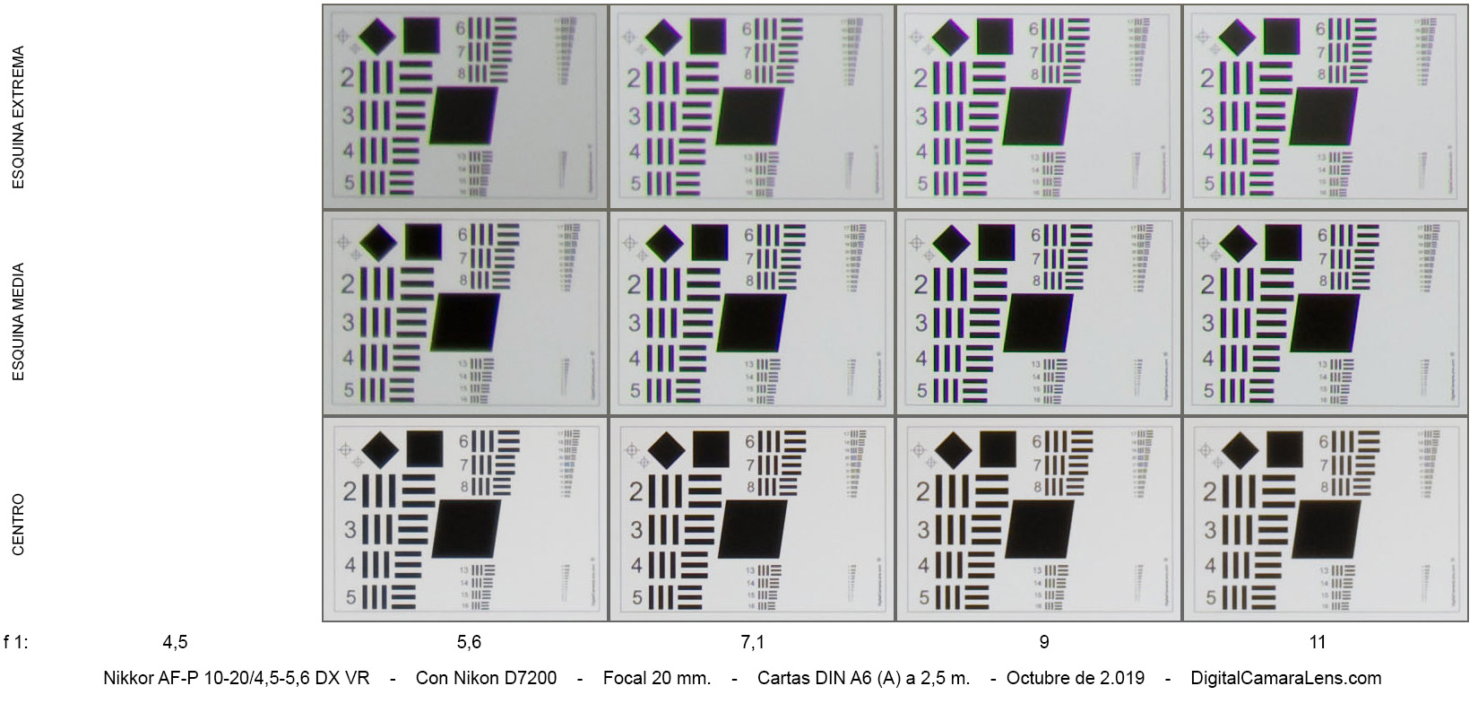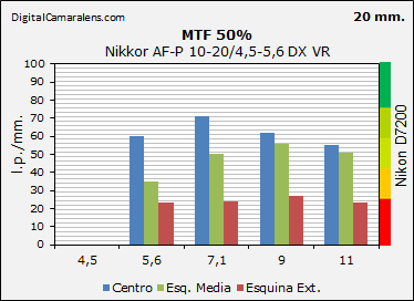 - Nitidez notable en la zona central, aprobado justo en esquinas medias y