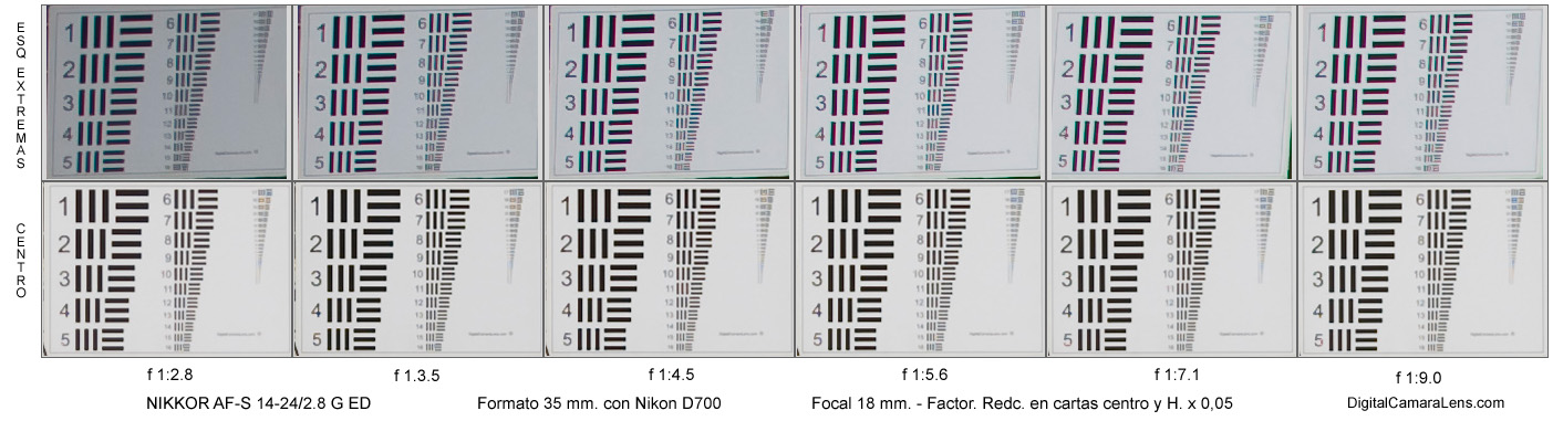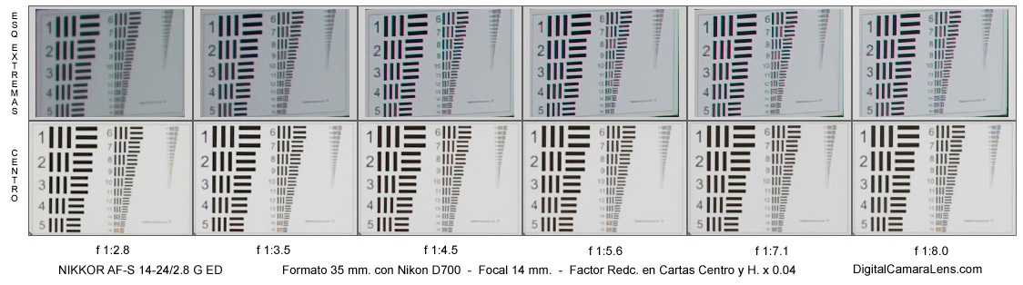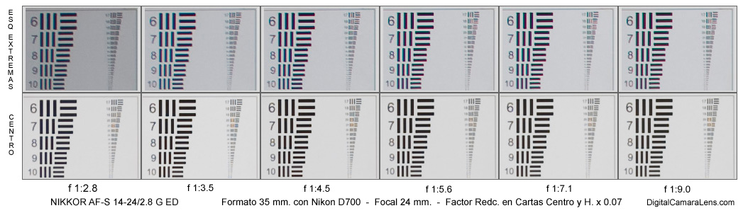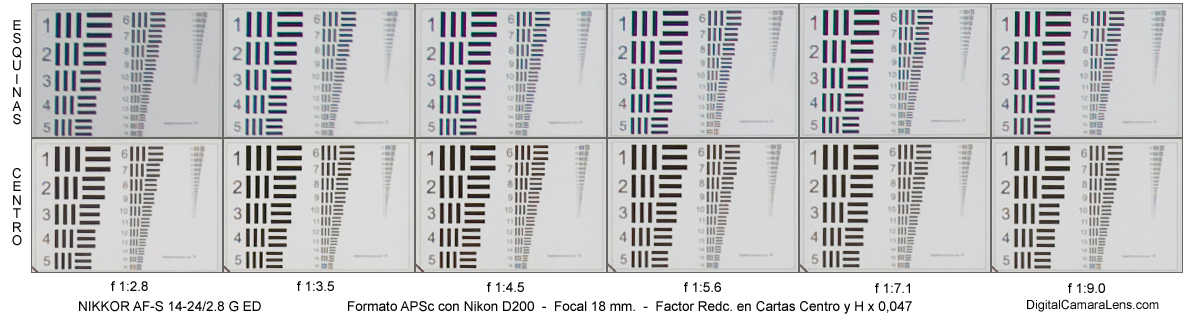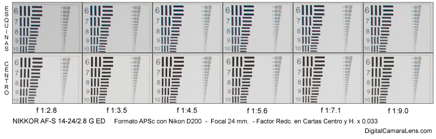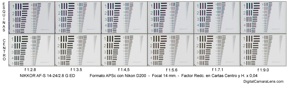 resolutivo de la Nikon D200 (58.6 l.p./mm.) en el centro a partir de f