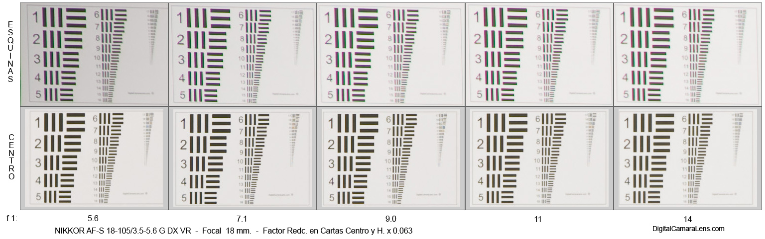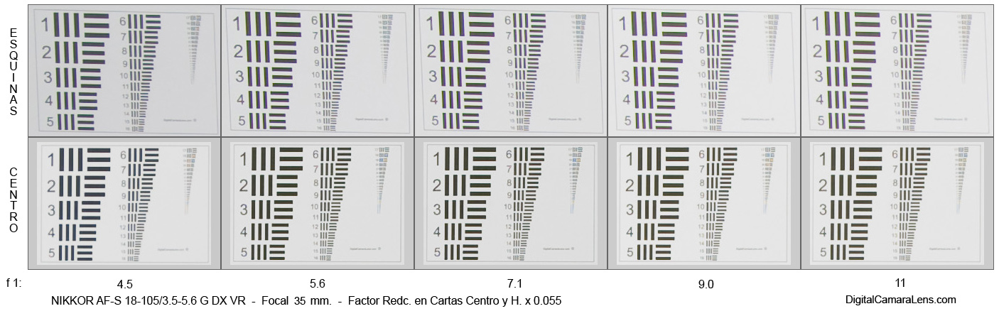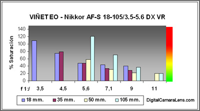 Los valores de viñeteo se aprecian altos hasta los f 1:5.6 pero en línea