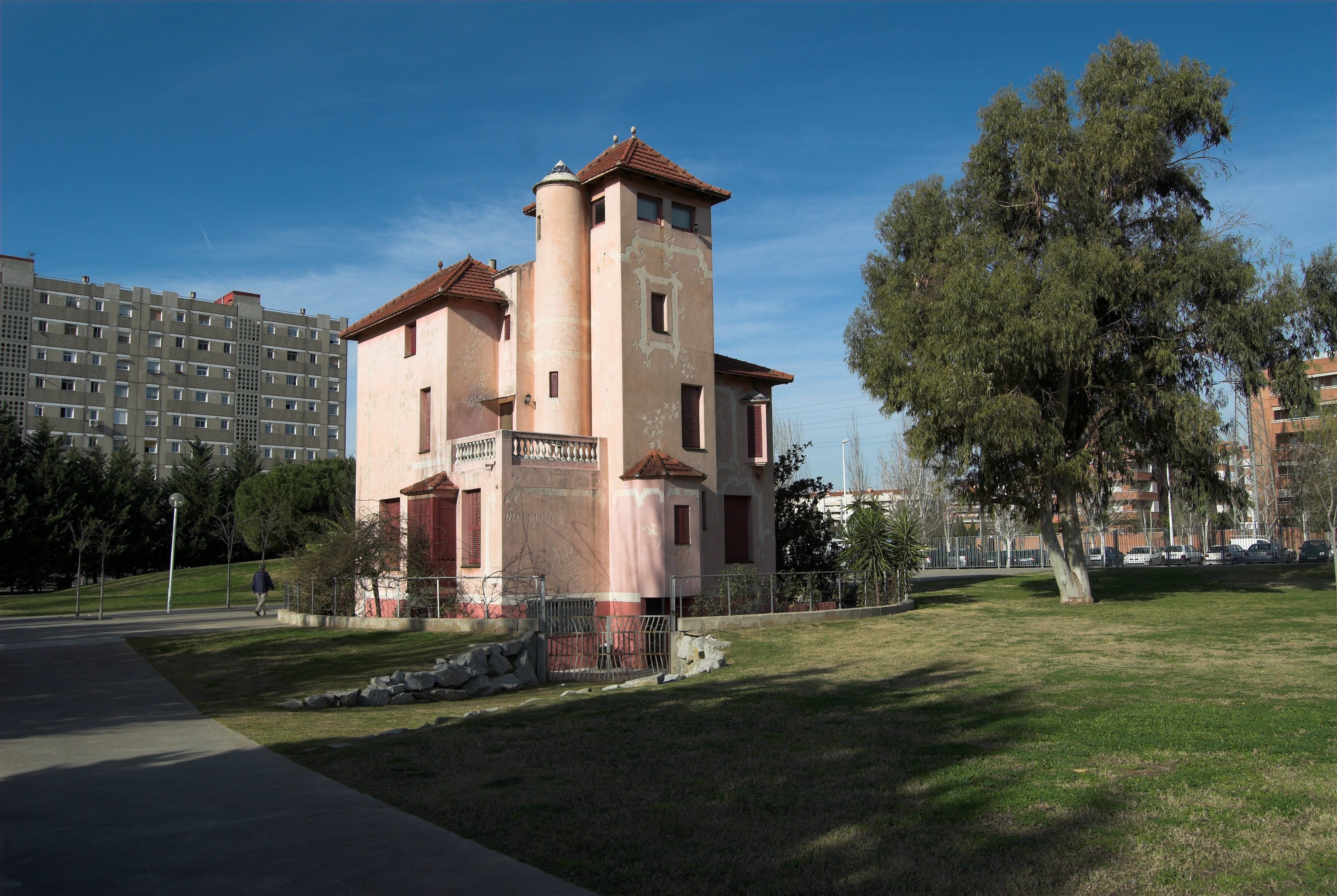 del edificio. Los perfiles de alto contraste laterales (edif. gris y