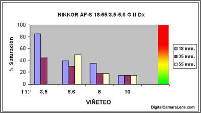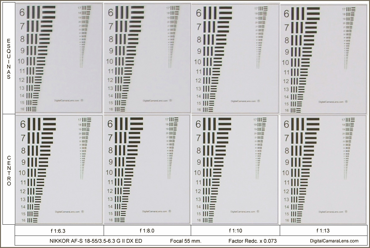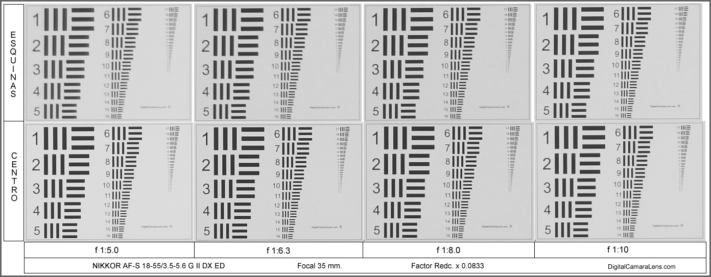 de color verde. La mejor zona de contraste se sitúa en los f 1:8.0.
