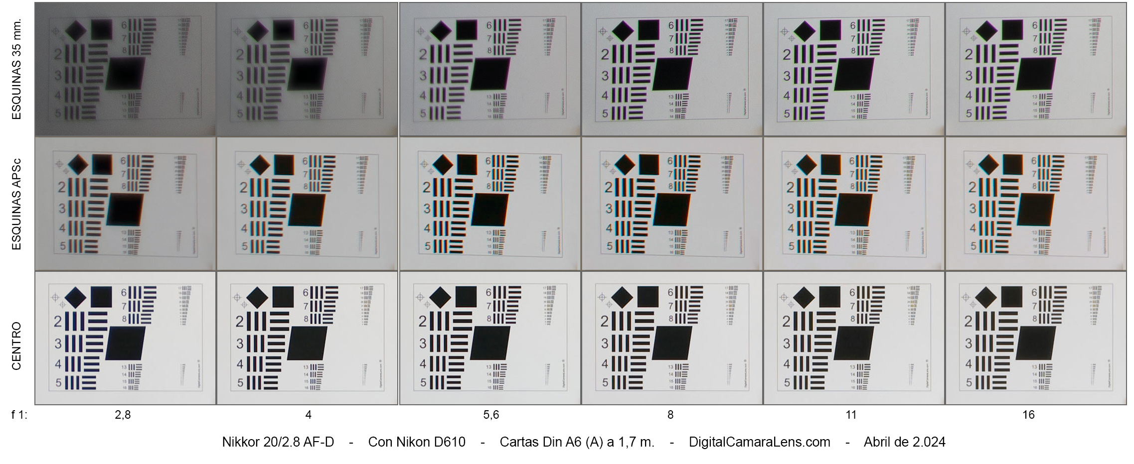 Cuando vamos a probar un 20 mm. afamado sobre un sensor actual debemos