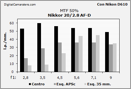 del Nikkor 20/2.8 AF con características D.